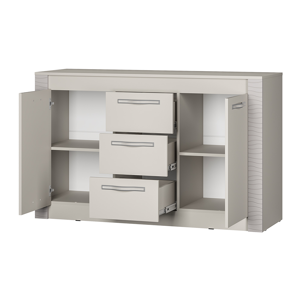 Вместительный комод "Монако" выполнен в сдержанном и элегантном стиле, как и все модели из одноименной мебельной коллекции. Изделие изготовлено в светлом цвете "кашемир" из качественной ЛДСП и имеет декоративные вставки из МДФ. Расположить все необходимые вещи можно в трех выдвижных ящиках либо на полках за распашными створками.