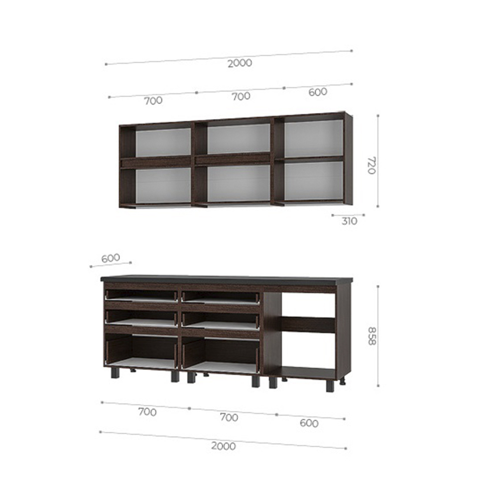 В комплект входит столешница 38 мм "Чёрный янтарь" 2000 мм.