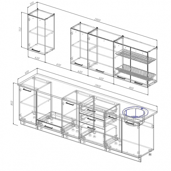 Артикул: A63006Кухонный гарнитур Хозяюшка 1800 Акация/Деним (Эра)