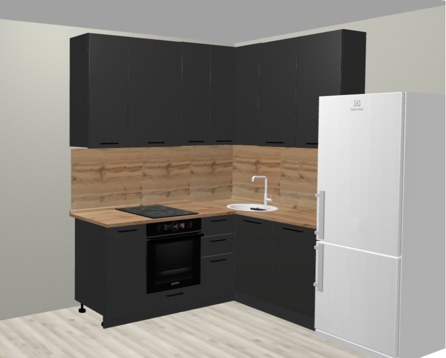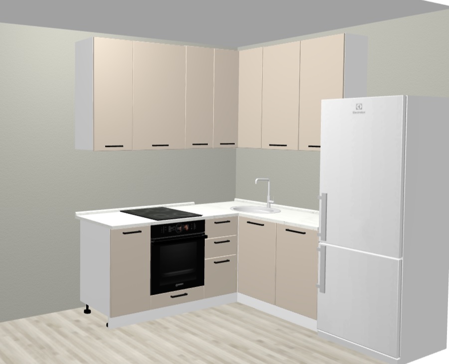 В стоимость не входит, раковина, смеситель, техника, фартук, плинтуса и закрывающий комплект (глухая панель нижнего бокового модуля. можно докупить отдельно)