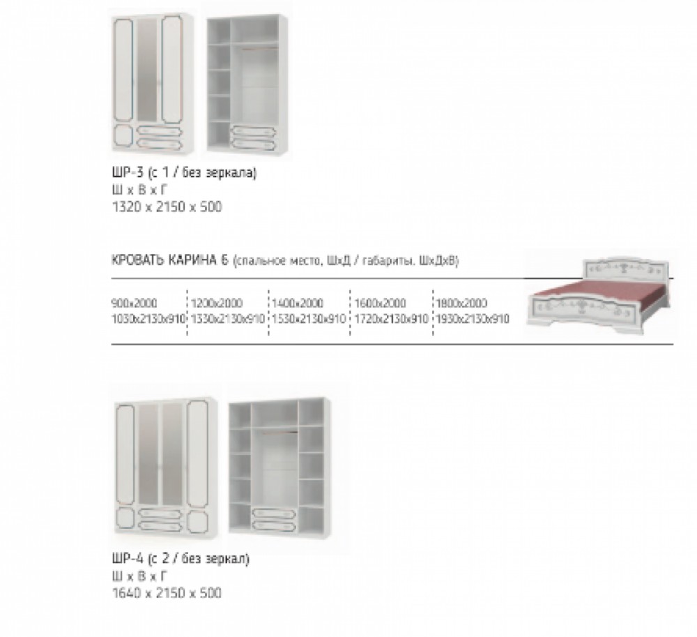 Белоснежность фасадов, элегантная отделка рисунком, классический распашной шкаф с зеркалом - так выглядит идеальная спальня. нежный оттенок белого жемчуга делает комнату более просторной и светлой - универсальный вариант для любого стиля.