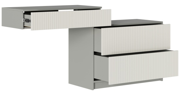 Корпус выполнен в изысканном цвете Шиншилла Серая, а фасады - в современном оттенке Кварц Грей Софт.